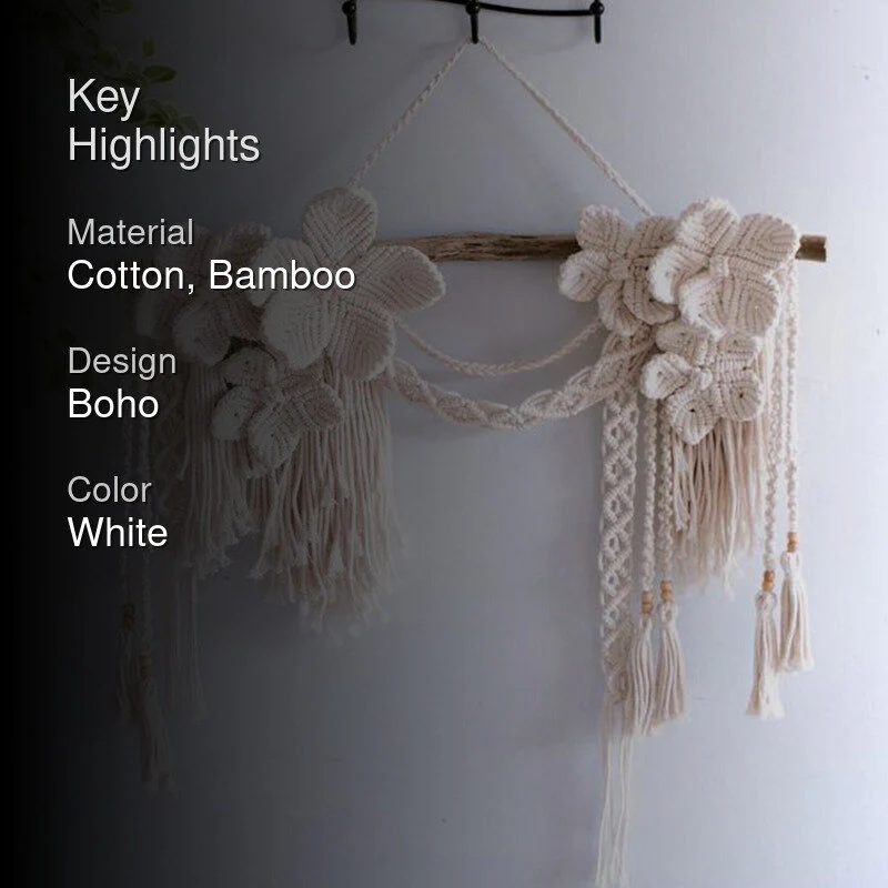 Imagine a world where boho charm meets the gentle rustle of leaves. This wall tapestry isn't just decoration; it's a whisper of the outdoors inside. Crafted with soft cotton and bamboo, it features beautifully woven flowers that hang gracefully from rustic driftwood. You know what makes it even better? Those intricate knots and flowing tassels! Perfect for a living room facelift or a cozy reading nook. And here's the thingit's so easy to care for. Just wipe it clean! Picture yourself curled up with a book, sunlight streaming through the windows, and this beauty hanging above. Ah, isnt that just a dream?