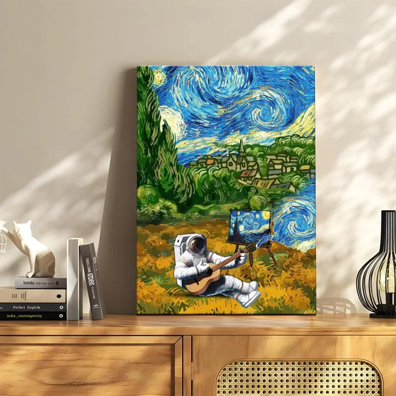 The Astro Starry Night Wall Painting captures the mesmerizing beauty of a starry night, inviting viewers into a tranquil cosmic scene. This artwork is perfect for adding a serene touch to bedrooms, living rooms, or meditation spaces. The rich colors and dreamy designs create a calming atmosphere that encourages relaxation and contemplation. Ideal for those who appreciate the wonders of the universe, this painting enhances your decor with a sense of peace and beauty.