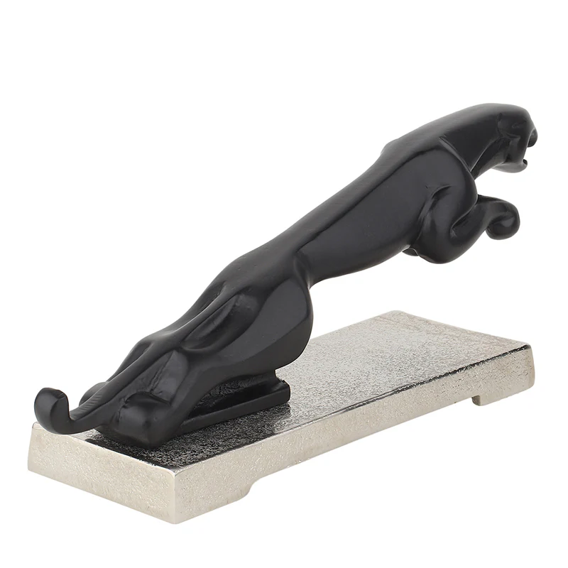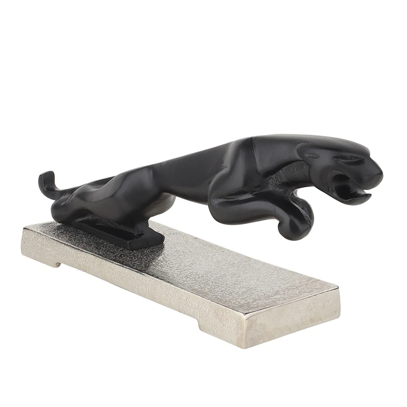 Imagine a panther mid-leap, frozen in time and sleek as a shadow. This modern aluminum showpiece is a conversation starter. Why? Because it captures motion in the most elegant way. Its smooth black finish on a textured silver base is like poetry for the eyes. And heres the kickerit's perfect for adding a dash of wild intrigue to your decor. Youll find yourself gazing at it during those Sunday mornings with a cup of chai, windows open, and life happening around you.