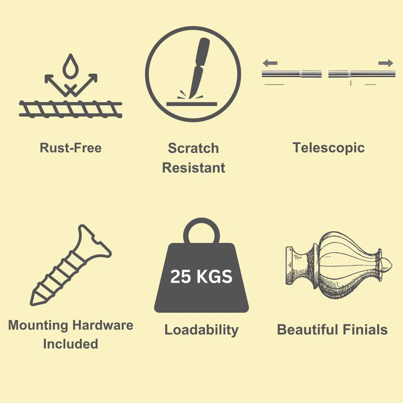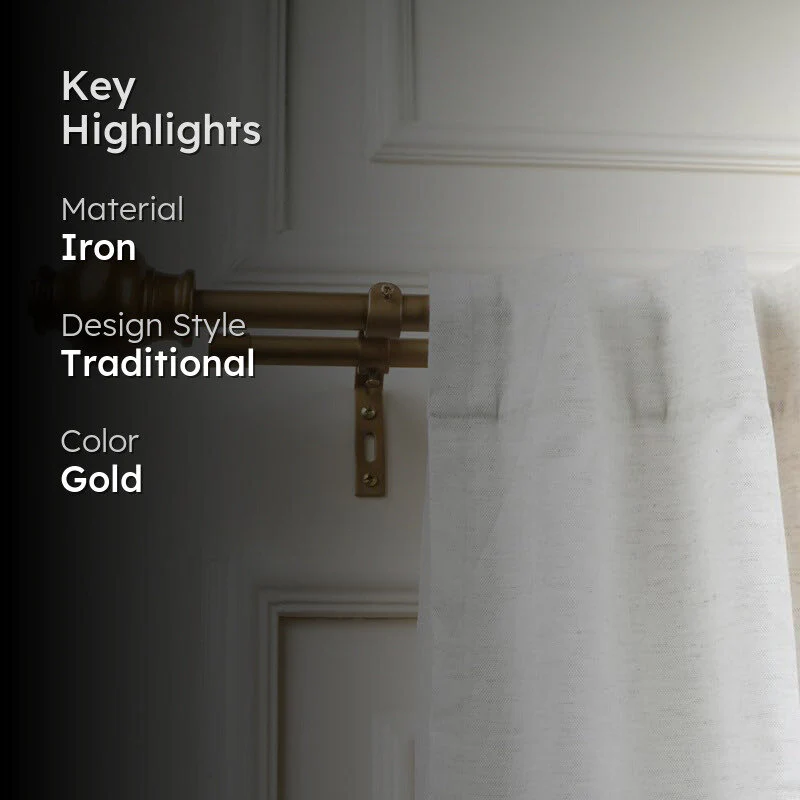 Oh, these curtain rods are like a little piece of art for your window! With a golden glow and traditional round ends, they're sure to elevate any room. Why choose ordinary when you can have this set that whispers elegance? And imagine, as the evening sun dips, your curtains draping perfectly over these shiny beauties. Plus, they're super simple to wipe clean. Sunday chai, windows open, curtains swaying gently. Perfect, right?