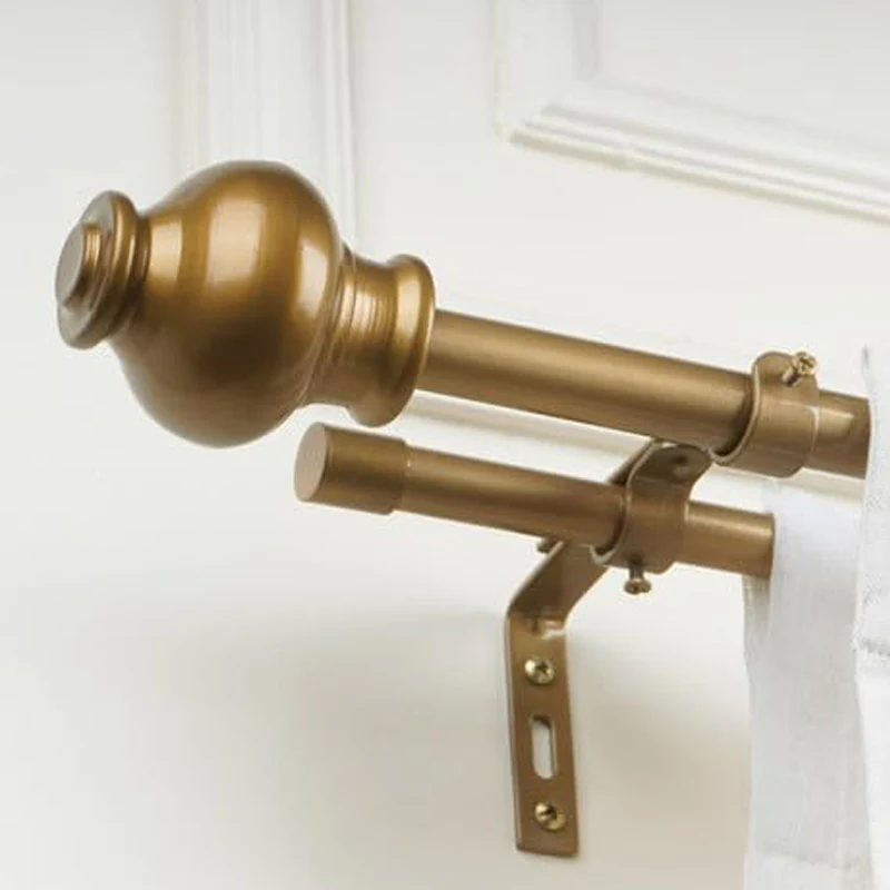 Zellij Duo Extendable 1'' Double Curtain Rods With Round Finial & Brackets (Gold)